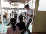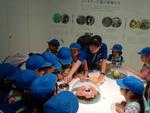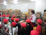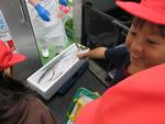 スーパーの方から買い物の導線の順番や見やすい商品名、陳列している物と関連する物を一緒に並べるなどの工夫、国内外の全国から仕入れていることなどを教えていただきました。またバックヤードでは、今日仕入れたブリやタイの大きさに思わず歓声が上がりました。その後の2,3℃の冷蔵庫の部屋に入るとみんな「さむ~い!」と腕をさすります。その隣のアイスや冷凍食品の冷凍庫に入ると「うわー!」と大きな声があがります。「-20℃あるんだよ」と聞くと「ぎゃー!」と大絶叫の悲鳴に変わります。早々に冷蔵室に戻ると「あったかーい!」ですって。