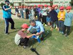 「投げる・取る」の基本の動作を教えてもらった後はティーボールのゲームです。