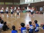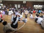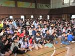 「○×クイズ」では最後の一人は4年生の女の子でした。残れなかったみんなから盛大な拍手で祝福しています。