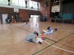 体育館から軽快なリズム音が流れてきます。のぞいてみると4年生がシャトルランを頑張っています。