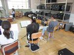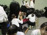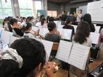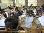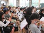 部長さんの音楽会に向けての意気込みを感じた挨拶の後に1曲目の「シンクロボンバイエ」の手拍子が始まると子ども達は集中し始めます。2曲目の「スカイ アドベンチャー」になると真剣な表情で聴き入っています。最後は大きな拍手です。ブラスバンド部の子ども達も本番自信を持って演奏を楽しむことができそうです。