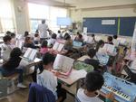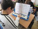 2年生の教室からは「山のポルカ」、音楽室からは4年生の「陽気な船長さん」の鍵盤ハーモニカやリコーダーの軽快なメロディーが流れています。