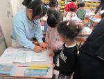 おうちの人と離れて、幼稚園や保育園よりちょっと大きい小学校の中をグループで歩いたり教室で検査したりとドキドキしたかもしれませんね!?