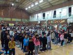 体育館工事が一段落し、全校で集まることもできるようになりました。