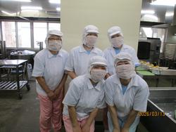 5人の調理員さん達が450食近く,朝早くから作っているのです。1年間、おいしい給食ごちそうさまでした!