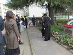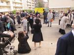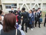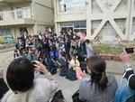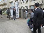 もう卒業生が正門前に登校していました。いつもより着飾った装いにみんなのテンションも上がります。