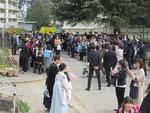 最後の見送りのあと、学校から去りがたい気持ちと卒業したという晴れがましい気持ちが交ざったようにみんなで記念撮影に興じる姿は教師冥利に尽きるひとときでもあります!