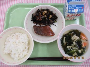 ごはん さばのみそに ひじきのいりに わかたけじる 牛乳 |