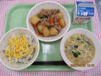 なのはなごはん にくじゃが たまごのみそしる 牛乳 |
