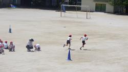 今日はとても気持ちのよい気候でした。校長が検食(お先に給食をいただいています)をしている時に、元気いっぱい運動しているクラスが見えたので、校長室から撮影しました。2年生、3年生、5年生の様子です。
