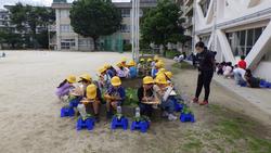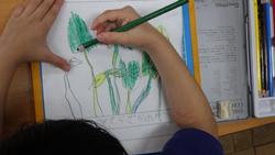 下の写真は1年生があさがおの観察をしている様子です。成長の様子を観察しているクラスと、本葉が増えてきたので間引きをしているクラスがありました。1年生の成長と共にあさがおもぐんぐん育っています。
