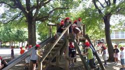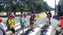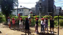 2年生と一緒に学区探検に行ってきました。今日は下校のコースで言うと緑と青コースです。先週、葛西臨海水族園に校外学習に行きましたから、集合・整列はばっちり。子供たち同士で声をかけあって並んでいる姿が印象的でした。日頃、何気なく歩いている学区ですが、お店や公共物、自然などたくさんの発見がありました。ポストがあった、児童館があった、自転車の修理屋さんがあった、どんぐりを見つけたなどなど、自分の住んでいる町の様子を知ることができました。公園では、グランドゴルフをしている方々がいらっしゃったのですが、子供たちの大声援により、ホールインワンをされた方がいました!!大喜びでハイタッチ。地域の方との時間を過ごすこともでき、嬉しい学区探検となりました。