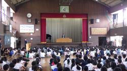 過ごしやすい季節になり、ようやく全校で体育館に集まれるようになりました。今日は10月の全校朝会です。国語と理科の表彰と図書委員会からクイズ形式の本の紹介もありました。楽しいクイズを考えてくれた図書委員会さんありがとう。