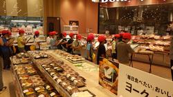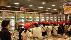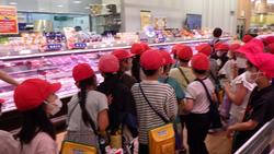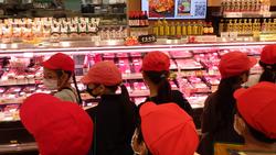 3年生と一緒に「ヨークフーズ八柱さくら通り店」へ社会科見学に行きました。お店に到着すると、各クラスに1名ずつ従業員の方がついてくださり、とても丁寧にご説明をいただきました。入口には、ペットボトルの回収機やゴミを分別するボックスがあり、環境保全へ貢献されていることを伺いました。その後、青果コーナー、鮮魚コーナー、冷凍コーナー、惣菜コーナー、パンコーナーなどを一回り。秋においしい食べ物が、お客さんにわかるように陳列されていることや、冷凍コーナーの温度が管理されていること、パンを焼くオーブンの温度などを教えていただきました。最後に、普段は絶対に見ることのできないバックヤードへ。マイナス17度の冷凍庫に入る体験や、商品を運ぶ巨大なエレベーターにクラス全員で乗せてもらう体験をさせていただきました。その他にも大きなお肉や魚を裁断するところも見せていただき、とても貴重な時間となりました。私たちの食卓に並ぶものは、たくさんの方々の努力によって、安全に届いているということがよくわかる見学となりました。お忙しい中、子供たちのためにお時間を作っていただき、丁寧にご説明いただいたヨークフーズの皆様に感謝申し上げます。教科書やインターネットだけでは知ることができない、リアルな学びができました。常三小の3年生のみなさん。しっかりと学習にいかしていくことが恩返しですよ。がんばりましょうね。