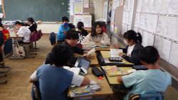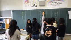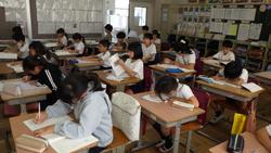 4年生は書写と学級活動の時間でした。毛筆の「はす」は「結び」の部分(丸いところ)の筆使いが難しいですが、上手に書けていました。学級活動では、10月の生活目標「本をたくさん読もう」に対して、自分のクラスではどんな取り組みをするかを考えていました。