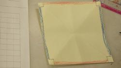 2年生は算数の時間です。昨日は四角形の直角を調べていましたが、今日は辺を調べていました。折り紙をつかい、隣の辺の長さを調べているところです。