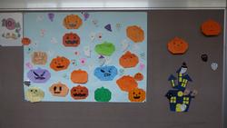 けやき学級が作ったハロウィンの掲示物が廊下に飾られています。作っているところも見ましたが、かぼちゃもおばけもたくさん増えてびっくりしました。がんばったね。ハロウィンが楽しみです。