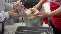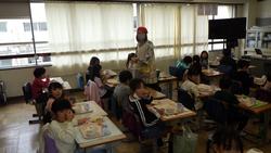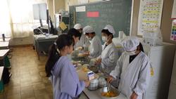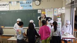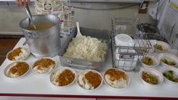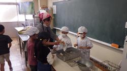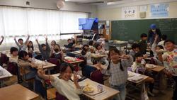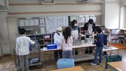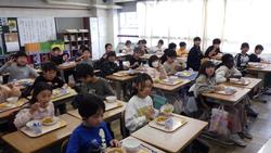 写真は、授業参観後の給食の様子です。授業を終え、ほっとした子供たち(先生も?)を撮影!