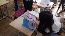 子供たちの「わー!!」という声が聞こえたので、あわてんぼうのサンタクロースでも来たのかと思い教室を覗いてみると、なんと算数の学習でした。3年生は「重さの単位とはかり方」を学習しているのですが、教室にあるものをいろいろはかり、ぴったり1㎏になったときに大きな歓声があがったようです。辞書とセロハンテープと○○ちゃんのハンカチを乗せるとぴったり1㎏。○○ちゃんのハンカチが大活躍でした。身の回りのものの重さをたくさん測定しながら、量感を養っています。ちなみに私が持ち歩いているデジカメは200グラムでした。歓声があがる算数の授業は教員としてとてもうれしいです。