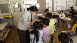 1年生の教室を覗いてみると、あさがおの種が机の上にいっぱい並んでいました。みんなが育てたあさがおの種を10個ずつまとめ、担任の先生に手渡しています。担任の先生の机の上は種だらけ。10、20、30、………100!10、20、30、………200!みんなで声を合わせて数えていました。なんとあさがおの種は696個。子供たちは大喜びです。常三小の全校児童よりも多いよと伝えると、さらに盛り上がっていました。先生方を合わせても種の勝ち。おめでとう1年生。1年生は算数で「おおきいかず」を学習しています。自分達で育てたあさがおが算数の学習にもつながっています。