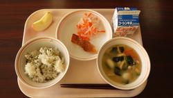 新年お祝い給食です。おせち料理にある「なます」や無病息災を願う「七草ごはん」と一緒に、お祝いの意味をこめた「紅白」の色を取り入れ、「赤魚の塩焼き」、「白玉団子汁」、「りんご」という新年にぴったりの給食でした。今年もおいしい給食をいただけて幸せです。給食をもりもり食べて3学期もがんばろう。