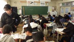 6年生は書き初めに取り組んでいました。体育館がエアコン設置工事のため、図工室で実施しています。各学年交代で使っているので、6年生はこの日に実施していました。文字を見るとさすが6年生ですね。文字のバランス、始筆、終筆、はらいなど、筆の扱い方がすばらしいです。1月26日から校内書初め展を行いますので、子供たちの力作をご覧になってください。