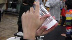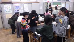 5年生は理科の実験の最中でした。物が水に溶ける量には限りがあるかを調べています。今日は食塩を溶かしていました。水の中に食塩を1回、2回、3回と溶かし続けています。食塩が溶けるまで振っているので、腕がつかれたようです。結果はどうだったのかな。班で協力して学習していました。