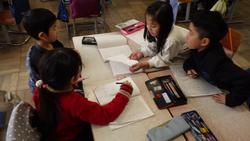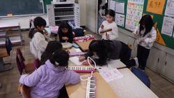 2年生の学習の様子です。グループに分かれているのですが、グループごとにやっていることが違うので何の学習かを尋ねると、この1年間でできるようになったことをまとめ、グループごとに発表をするとのことでした。鍵盤ハーモニカの演奏グループやけん玉の発表グループ、かけ算の発表グループなど、自分達の成長を振り返り、発表の仕方をグループで考え形にしているところがすばらしかったです。発表の成功を祈っています。