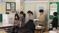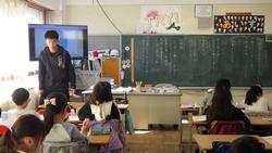 次は理科の学習です。これまでと比べて植物や動物の様子はどうなっているかを発表していました。校庭や中庭の木々の様子も随分変わっています。春に備えているという発言もありました。気温は秋が24度、冬が9度と黒板に書いてあってびっくり。今年度の秋は暖かかったけど、急激に気温が下がりましたね。