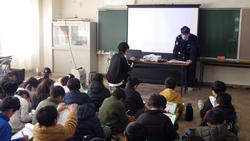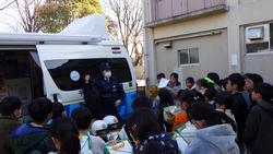 3年生の社会科「事故や事件からくらしを守る」の学習のため、今日は千葉県警察の警察官の方が移動交番車に乗って本校にいらっしゃいました。制服を着た警察官の方が実際に身につけていらっしゃる警棒や手錠、防護服や防護手袋などを見せてくださったあと、移動交番車に乗って座席に座らせていただく体験ができました。子供たちからは、「今までで一番大変だったことは何ですか」「勤務時間は何時から何時までですか」「警察官になるためにどんな訓練が必要ですか」など、たくさんの質問が飛び交いました。教科書で学んだことを実際に見たり聞いたりしたことで、学びが深まると共に、私たちの暮らしを守ってくださる警察官の方々への感謝の気持ちがさらに湧きました。警察官の方々、子供たちのためにありがとうございました。