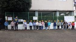登校時は雨がやんでいたものの、とても寒い朝でした。その中でも1年生が正門の前に立って、挨拶運動に参加しています。私もロングダウンコートを身にまとって正門の前に立っていますが、1年生の挨拶に元気をもらい寒さが吹き飛びます。終わったあとに、上級生と反省会をしている姿もかわいらしかったです。寒い中、ありがとう。