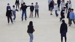 練習が終わった後、校庭から賑やかな声が聞こえてきました。6年生が校庭でレクをやっていました。この時間が大切な思い出です。