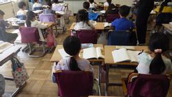 この写真は何の場面かというと・・・実はこれ、自習中の様子なのです。なぜ、自習をしているかというと、今日は研修があり、職員が他の学級の授業を参観する時間があったためです。自習中の様子が気になり、様子を見に行ったのですが、心配していたことが申し訳ないくらいどのクラスも静かに自習に取り組んでいました。1年生からこんなに静かに自習ができて、本当にすばらしいです!!!