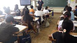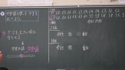 6年生は算数の学習中でした。中央値を求める学習で、調べる対象となる数値(データ)が奇数の場合は中央値はすぐにわかるけど、偶数の場合はどうなるか…ちょうど、その場面を扱っているところでした。「決められないんじゃないか?」とか「小数にして平均を求めればよいんじゃないか」とか白熱した議論が交わされていました。