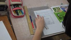 1年生基礎基本の時間の様子です。漢字の学習中でした。発表するときは、指先を伸ばして「はい。」素晴らしい姿勢でした。漢字を覚えて、普段から使っていきましょう。