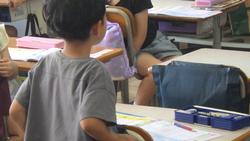 4年生は3年生と同様に、書写の時間でした。今日の字は「はす」です。3年生が漢字なのに、4年生でひらがな?と思われるかもしれませんが、実はひらがなの方が習字で書くと難しいものです。4年生の子供たちも「字の形がとれなくて難しい」とつぶやいていました。