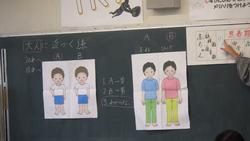 4年生保健体育の学習の様子です。二次成長の中で、体にはどのような変化が起こるのかについて、保健室の養護教諭の授業がありました。3枚目の写真はのどぼとけを優しく触っている様子です。男子と女子の体の変化を知ることで、互いを思いやる気持ちを高めてほしいと思います。