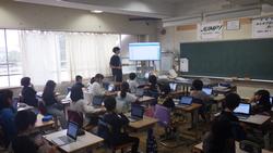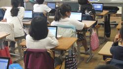 3年生総合的な学習の時間の様子です。教科担任制の授業でしたので、担任がチェンジして授業を行いました。写真は3年3組ですが、先日のスーパー見学のまとめを、タブレットの「発表ノート」というソフトを使ってまとめていました。