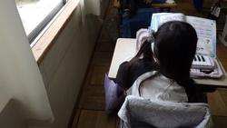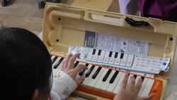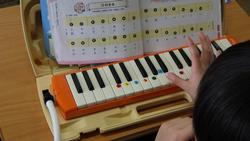 1年生音楽の様子です。1~2年生は教室で音楽を行います。鍵盤ハーモニカの演奏をしていました。といっても実はこの写真、音楽が始まる前の休み時間の様子です。自主練習に取り組む子供たちが多くて、すばらしいなぁと思いました。