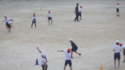 4年生校庭体育の様子です。2人1組になって、ボール投げの練習をしています。「利き手と違う手で投げてみよう」の教師の一声に、「えー」という反応。たしかに普段なかなか使わない手で投げると変な方向に飛んでいきますよね。