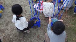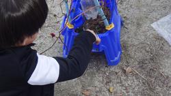 1年生は生活科の学習で「アサガオのリースづくり」の様子です。夏にかけて育ててきたアサガオのツルを使って、クリスマスリースをつくります。今日は鉢を持ってきて、はさみでツルを切りました。