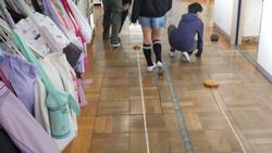 授業の時間帯に何やら廊下から子供たちの声が・・・見てみると、算数「平均」の学習の一環で「歩幅の平均長さ」を友達と測定し、求めている活動中でした。勉強というと、黒板とノート、タブレット、という印象ですが、実際に活動することで理解が深まります。