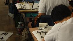 4年生書写「竹笛」の学習です。「文字の組み立て方に気を付けて書こう(上下)」がねらいです。竹の字が竹かんむりになると、文字の幅や形が微妙に変化しますね。そのことを意識しながら、筆遣いに注意しながら清書しました。
