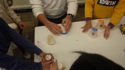 2年生生活科「おもちゃづくり」の学習です。タブレットの「Teams」アプリを活用し、作り方説明資料を子供たちに配信しました。子供たちはその画面にアクセスし、説明書を見ながら作成に取り組みました。何をつくるかというと「紙コップロケット」です。