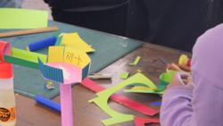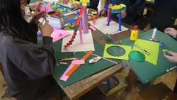 5年生図工「ビー玉大ぼうけん」の様子です。子供たちはこの作品づくりが大好きです。なんといっても、自分で迷路を作ったり、しかけを作ったりするのが意欲を湧き立たせます。「先生見てください!」と自慢気に見せてくれる子もいました。