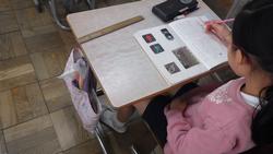 3年生国語「くらしと絵文字」の学習です。教師が教科書を範読し、大事な箇所に子供たちがマーカーをひいています。どの子も聞き漏らさないように真剣です。