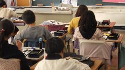 3年生は理科の授業で、太陽の光を紙に集める活動をしていました。この場面は、そのやり方と注意点について担任が指導をしている様子です。子供が「虫眼鏡は物を大きくする役割があるから、太陽の光を集めることもできるんだ」と発言していました。素晴らしい気づきですね。