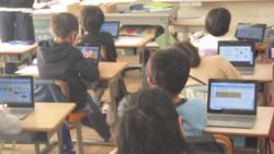 3年生、総合的な学習の時間です。以前のスーパーの見学で学んだことを「報告文」として、タブレットにまとめています。色使いや字の大きさに気を付けていました。