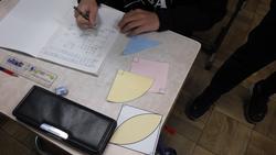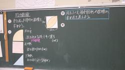 6年生算数「円の面積」の学習です。今日は校内での授業研究があり、多くの先生が授業を参観しました。今日の学習課題は円の形を含んだ複雑な図形の面積を求めるというものです。面積の求め方を知っている形に置き換えることで、複雑な図形の面積も求めることができます。
