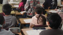 5年生、言語活用科「かくされた情報を見抜こう」の学習の様子です。ある学校のけが人の推移を表すグラフを見て「この学校は危険といえるかどうか」を考えました。しかし、実はこのグラフはある年度だけを切り取っているため、その前後関係まではここからは読み取れません。私たちが見ている情報は断片的なものであり、批判的に情報を見ることの大切さを学びました。